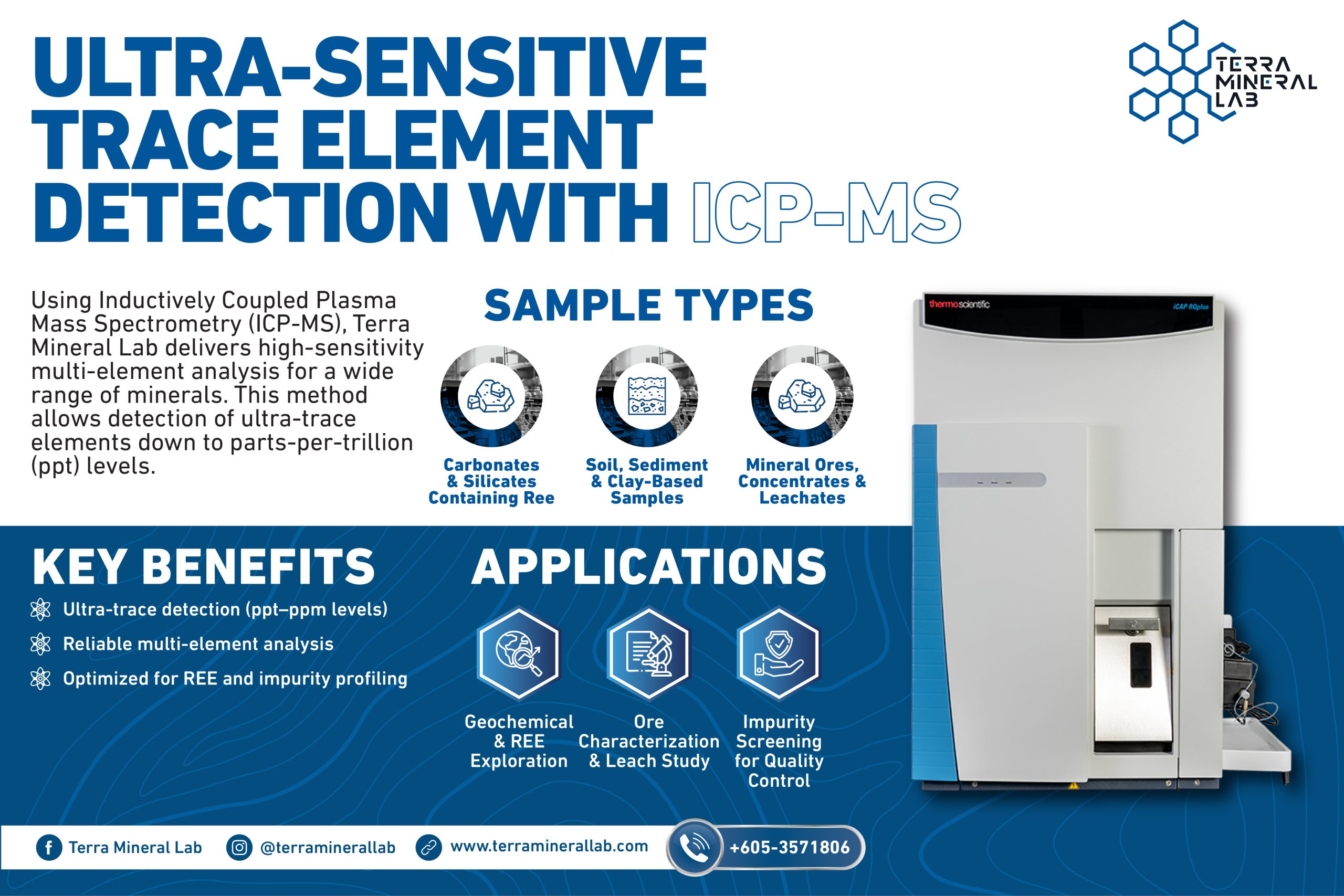 Detecting elements at extremely low concentrations requires advanced analytical technology. Terra Mineral Lab’s Inductively Coupled Plasma Mass Spectrometry (ICP-MS) service delivers high-sensitivity analysis capable of identifying rare earth elements (REE), impurities, and trace-level components with exceptional precision.